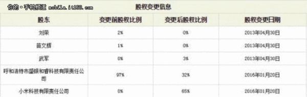 工商備案信息顯示,捷付睿通于2016年1月20日完成了股權(quán)變更,變更后,小米科技有限公司持股65%,呼和浩特市盛銀和睿科技有限責(zé)任公司持股32%。雷軍目前是捷付睿通法人代表和董事長。
