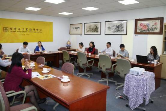 圖為:參訪團一行在臺灣手工業(yè)推廣中心參觀考察。 攝影:劉雪峰
