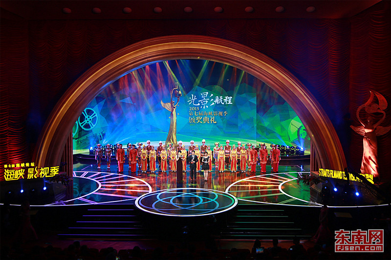 頒獎儀式以“光影航程”為主題,展現(xiàn)兩岸影視交流合作歷程與成就。閻曉明、梅小青、朱延平、蔡岳勛、張世,呂麗萍、徐小明、修杰楷、孫耀威、蔡淑臻、林美照等兩岸影視界名人亮相現(xiàn)場。臺灣原住民鼓舞《木鼓祈福》、舞劇《絲海夢尋》片段、海峽兩岸合拍片主題歌串燒《攜手》、歌曲《兩岸一家親》等精彩節(jié)目贏得陣陣掌聲。