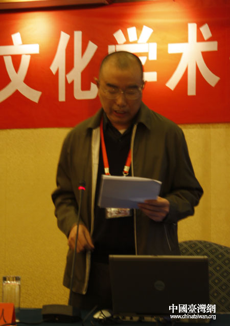 中國政法大學法律史學研究院教授、中央民族大學民族法學博士研究生導師李鳴在研討會上發言(中國臺灣網 徐麗華 攝)