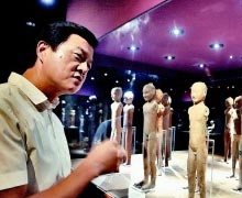 臺北縣長周錫瑋今天抽空親臨現(xiàn)場,體驗“微笑彩俑”的微笑之謎。周錫瑋一路仔細欣賞文物,大贊漢代彩俑精致細膩,工法不輸現(xiàn)代。他也頻頻詢問彩俑的制作和出土歷程。由于展出文物豐富細膩,讓周錫瑋好奇,忍不住問:“古代帝王一個葬禮究竟要花多少錢?”