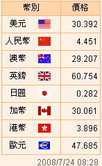 臺幣匯率公告2008.07.24
