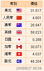 臺幣匯率公告2008.08.27