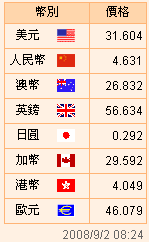 臺幣匯率公告2008.09.02