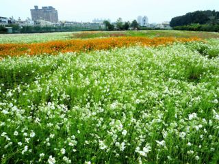 橋頭花田廣植各色波斯菊、向日葵與翠盧莉等花卉,組成四大主題圖騰景觀,包括呈現橋頭區徽的“我愛橋頭”、省道彩虹橋意象的“夢想隧道”、萬紫千紅的“彩虹大地”以及利用粉紫波斯菊編織的“甜甜的夢”。今年橋頭花海的賞花期將持續至12月16日。(中國臺灣網 周劍)