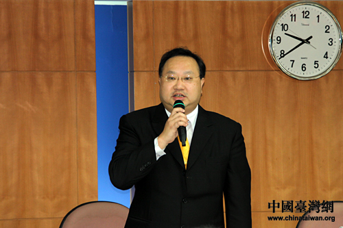 臺灣德明財經科技大學研發長盧瑞山在開幕式上致辭。(中國臺灣網 王偉 攝)