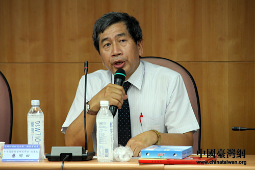 兩岸校企合作實踐教學創新與電子商務產業發展研討會綜合討論階段的主持人、臺灣中華國際經貿研究學會秘書長蔡明田。(中國臺灣網 王偉 攝)