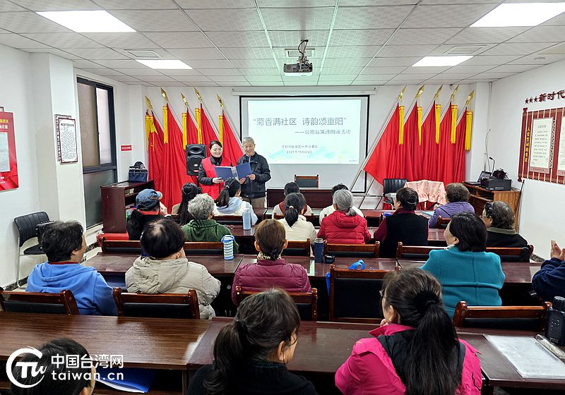 活動現場,來自社區的文藝骨干、老年大學學員以及臺胞臺屬代表輪番登場,傾情演繹。《九月九日憶山東兄弟》中“獨在異鄉為異客,每逢佳節倍思親”的共情詩句,《采桑子·重陽》里“戰地黃花分外香”的豪邁意境,在雙方飽含深情的誦讀中被生動詮釋。《重陽抒懷》《敬老歌》《鄉愁》等一首首膾炙人口的經典詩詞和現代篇章,也在大家聲情并茂的演繹下,或激昂澎湃,或深沉婉轉,充分展現了中華詩詞的永恒魅力,更表達了對老人的深深祝福、對家鄉的深切思念以及對美好生活的熱愛與向往。特別是幾位臺胞臺屬的朗誦,情深意切,引起了在場觀眾的強烈共鳴,現場不時爆發出陣陣熱烈的掌聲。誦讀間隙,臺胞臺屬與轄區居民還圍繞詩詞背后的節日習俗展開交流,雙方你一言我一語,在文化交流中加深了對彼此生活的了解,也讓“兩岸同根、文化同源”的認知更加深刻。