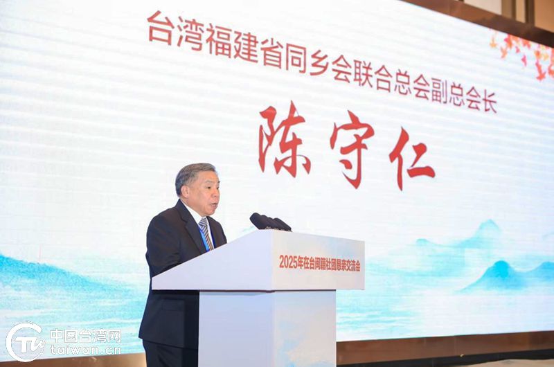 臺(tái)灣福建省同鄉(xiāng)會(huì)聯(lián)合總會(huì)副總會(huì)長(zhǎng)陳守仁致辭。(中國(guó)臺(tái)灣網(wǎng)發(fā))