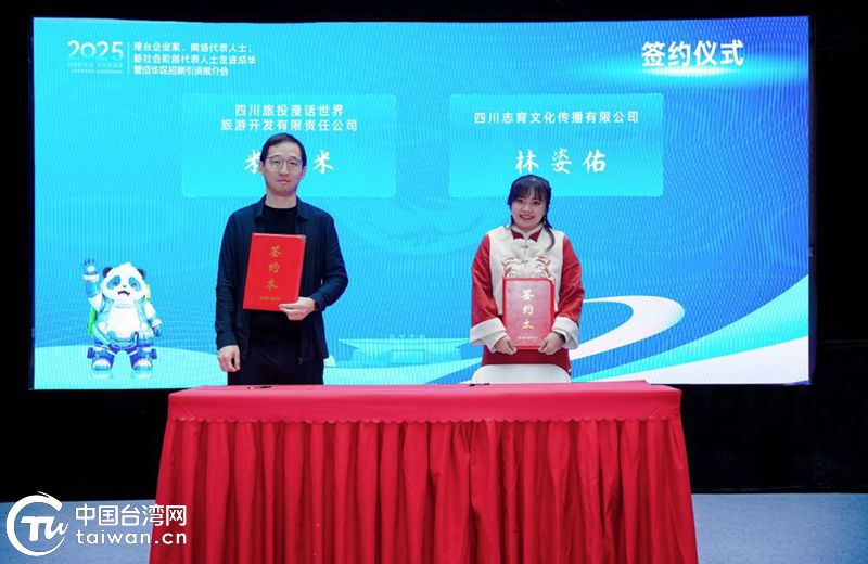 在項(xiàng)目簽約儀式上,四川旅投漫話世界旅游開(kāi)發(fā)有限責(zé)任公司與臺(tái)企四川志育文化傳播有限公司簽署研學(xué)項(xiàng)目開(kāi)發(fā)合作協(xié)議。研學(xué)項(xiàng)目聯(lián)動(dòng)熊貓基地、昭覺(jué)寺等周邊資源構(gòu)建文旅閉環(huán),助力動(dòng)漫城打造年輕消費(fèi)“引力場(chǎng)”,加速天府國(guó)際動(dòng)漫城“產(chǎn)學(xué)研”一體化基地成型。以研學(xué)為紐帶,進(jìn)一步深化兩岸文化交流,提升區(qū)域動(dòng)漫產(chǎn)業(yè)影響力。