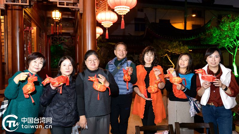 臺胞們手執親手制作的彩燈合影。(中國臺灣網發)