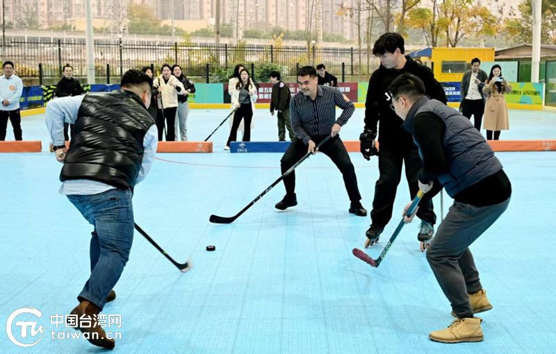 臺青體驗輪滑冰球運動。(中國臺灣網發)
