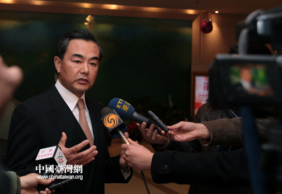 12月22日下午,中共中央臺辦、國務(wù)院臺辦主任王毅到首都機(jī)場迎接從臺北返回北京的海協(xié)會會長陳云林一行。圖為王毅在機(jī)場接受媒體采訪。(中國臺灣網(wǎng) 田云鵬 攝)