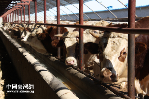 祥林育肥牛場里飼養的黃牛(中國臺灣網 陳寧 攝)
