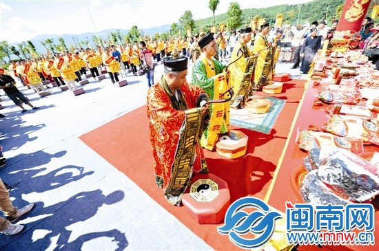東南網9月15日訊(海峽都市報閩南版記者 曾小琴 謝楊 文/圖)昨日,第四屆國際鳳山文化旅游節在南安鳳山寺開幕,臺灣千余信眾帶著廣澤尊王金身回“娘家”。兩岸信眾按道教傳統科儀、禮制、儀規,結合古老標準舉行祭典活動,共譜兩岸同宗同祖、民俗文化一脈相承的樂曲。泉州市委常委、宣傳部長陳慶宗,泉州市副市長周真平等出席開幕式。