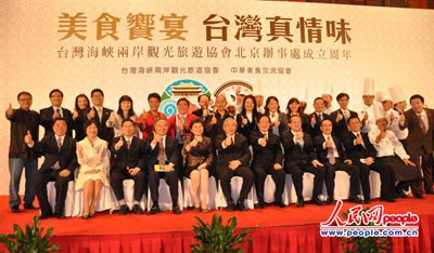 臺旅會北京辦事處周年慶于4日晚在北京國際飯店舉行。為回饋大陸民眾對臺灣好山、好水、好人情的支持,臺旅會特邀10位臺灣名廚推出一場100桌、千人參加的“美食饗宴-臺灣真情味”盛宴,邀請大陸旅游機構等各界人士及北京、天津參加優質赴臺游程的旅客參加,體驗傳統的臺灣辦桌餐宴。此外,從5月5日至10日臺旅會將與國際飯店合作展開“臺灣美食周”活動,由臺灣名廚駐點精心烹制,每天接待50位客人之限量套餐與5桌的桌餐對外販賣。