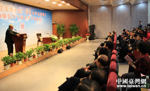 吳伯雄向南大學生發(fā)表演講。(中國臺灣網(wǎng)王文英攝)