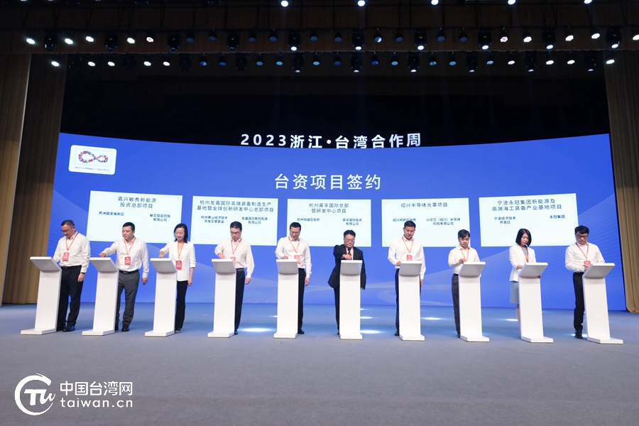 7月6日上午,2023浙江·臺(tái)灣合作周開(kāi)幕式上項(xiàng)目簽約儀式。(中國(guó)臺(tái)灣網(wǎng) 尹賽楠 攝)