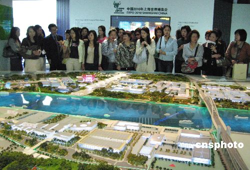 十月二十三日,常住上海的近百名臺(tái)商太太“組團(tuán)”考察2010年上海世博會(huì)新規(guī)劃。這是上海世博會(huì)申辦成功后,滬上最大規(guī)模的“臺(tái)灣團(tuán)隊(duì)”造訪上海世博局。臺(tái)商太太們來(lái)自滬上最知名的女臺(tái)胞社團(tuán)“移居上海太太俱樂(lè)部”,她們相約為上海世博會(huì)當(dāng)義工。 中新社發(fā) 許曉青 攝