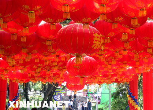 7月15日,西寧市民在觀賞“燈籠走廊”。近日,青海西寧市人民公園舉辦大型燈展,迎接北京奧運會。 新華社記者 侯德強 攝