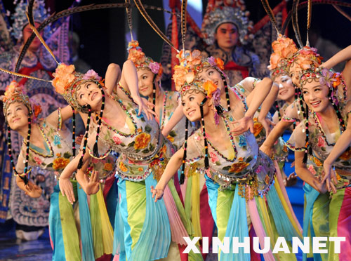 7月29日,演員在表演舞蹈。當日,《百年圓夢——迎2008北京奧運會文藝晚會》在北京舉行。 新華社記者 馬占成 攝