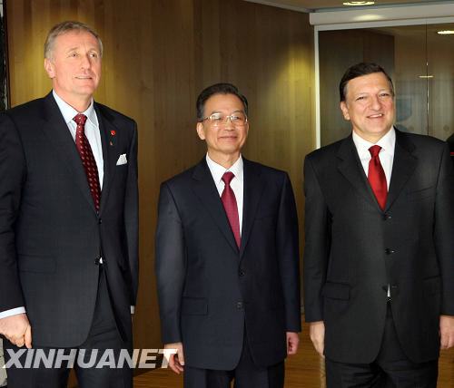 1月30日,國務(wù)院總理溫家寶在比利時(shí)布魯塞爾與歐盟委員會主席巴羅佐舉行會談。這是會談后,溫家寶與巴羅佐(右)及歐盟輪值國主席、捷克總理托波拉內(nèi)克合影。新華社記者蘭紅光攝