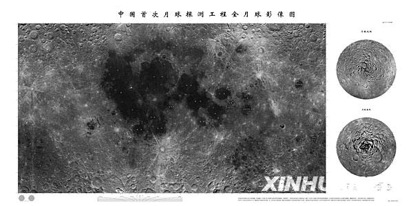 2008年11月12日,依據嫦娥一號衛星拍攝數據制作的中國第一幅全月球影像圖正式公布。 新華社發