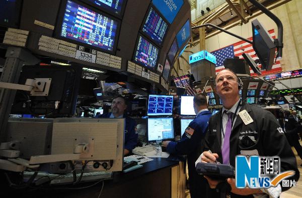 5月6日,交易員在美國(guó)紐約證券交易所內(nèi)工作。當(dāng)日,在歐洲債務(wù)危機(jī)的重壓下,紐約股市當(dāng)天暴跌,截至收盤(pán),三大股指的跌幅均超過(guò)3%,而道瓊斯指數(shù)盤(pán)中瞬間曾一度下跌近1000點(diǎn)。新華社記者申宏攝