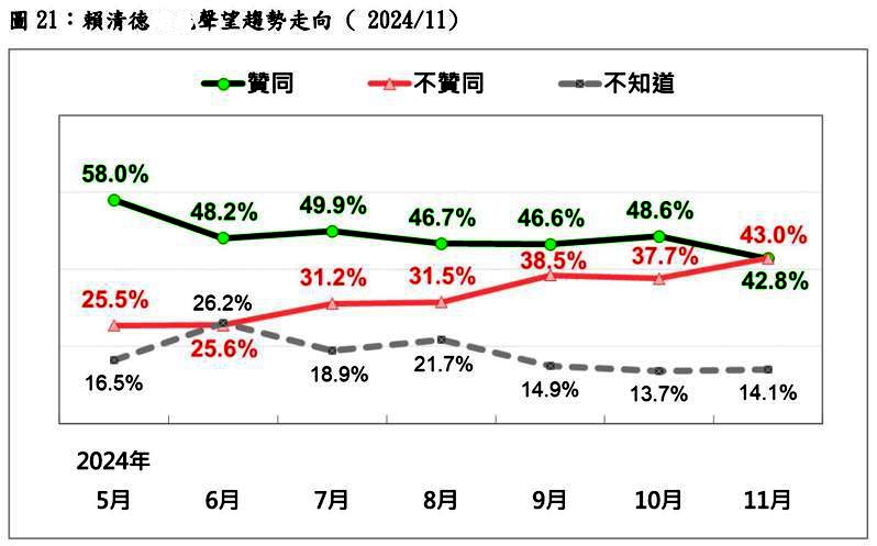 臺灣民意基金會公布11月賴清德民調(diào)。(圖片來源:“聯(lián)合新聞網(wǎng)”)