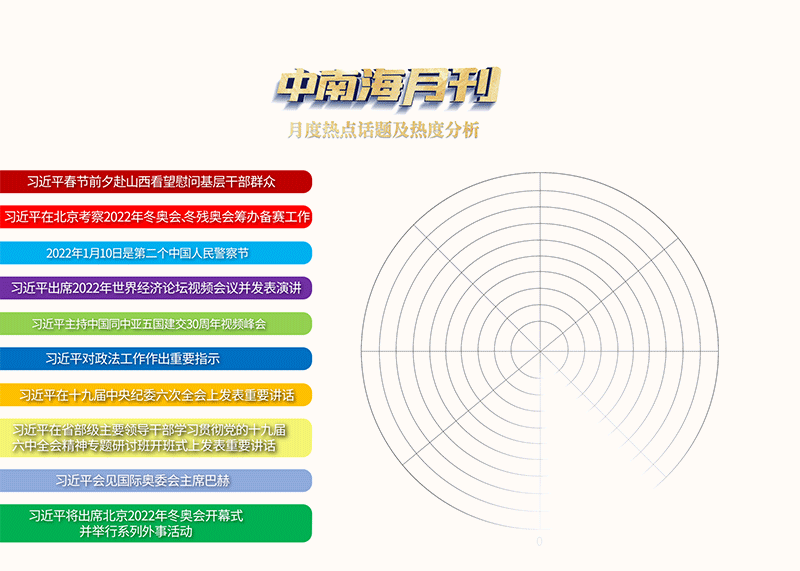 央視網《中南海月刊》運用智能大數據,梳理總書記2022年1月的重要活動和講話,一起感悟總書記赤誠的為民情懷。