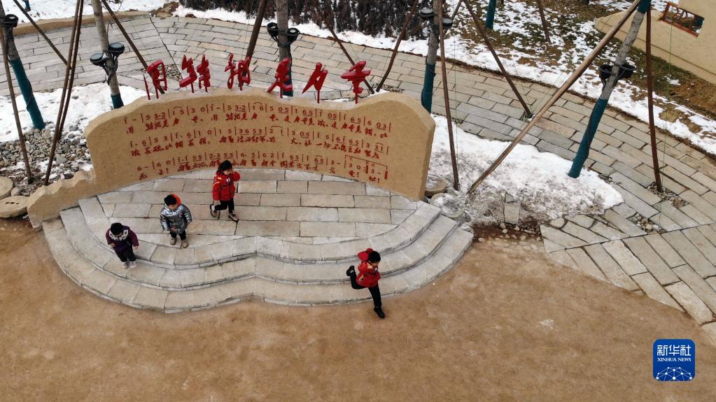 1月28日,小朋友在河北省平山縣西柏坡鎮北莊村(無人機照片)。新華社記者 駱學峰 攝