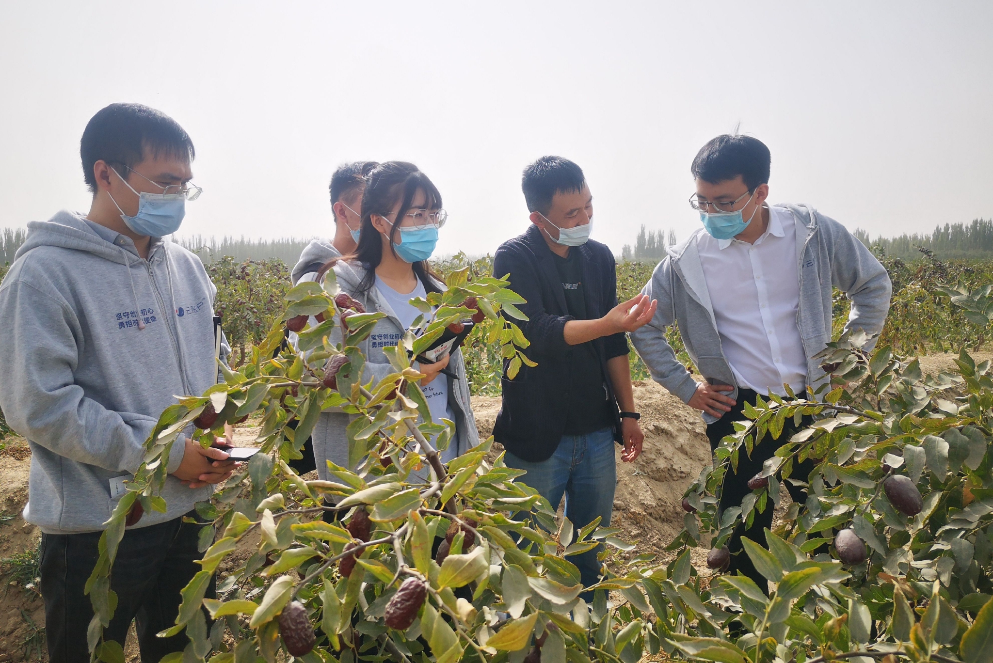 2020年10月,楊暉帶隊(duì)在鄉(xiāng)村調(diào)研紅棗種植產(chǎn)業(yè)(右一為楊暉)。受訪者供圖