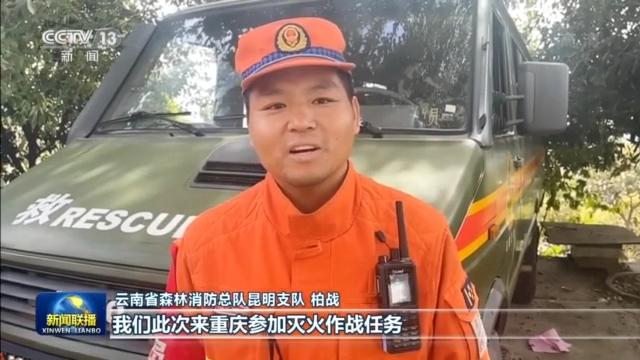 云南省森林消防總隊昆明支隊 柏戰:我們此次來重慶參加滅火作戰任務,有很多的第一次,比方說我們第一次坐摩托車上山、第一次在火場上吃到了冰棍,這些都是重慶北碚人民對我們無微不至的后勤保障的一個縮影,感謝北碚人民。