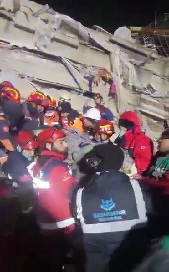 2月8日下午6時許,土方營救人員聯(lián)系中國救援隊,在一棟8層倒塌房屋中發(fā)現(xiàn)一名被困孕婦。中國救援隊隨即抵達(dá)現(xiàn)場進行救援評估,與土方共同制定營救方案,全程提供技術(shù)裝備支持。