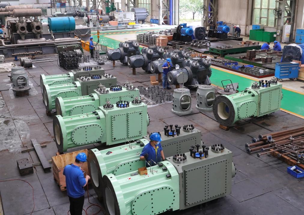 2022年6月13日,在沈鼓集團,工人在車間工作。新華社記者 楊青 攝