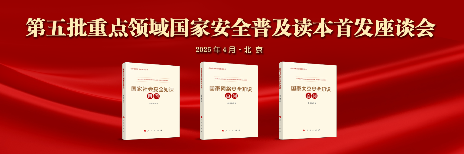 為推動學習貫徹總體國家安全觀走深走實,引導廣大公民增強國家安全意識和素養,在第十個全民國家安全教育日到來之際,中央有關部門組織編寫的第五批3種重點領域國家安全普及讀本——《國家社會安全知識百問》《國家網絡安全知識百問》《國家太空安全知識百問》近日由人民出版社出版,在全國新華書店發行。