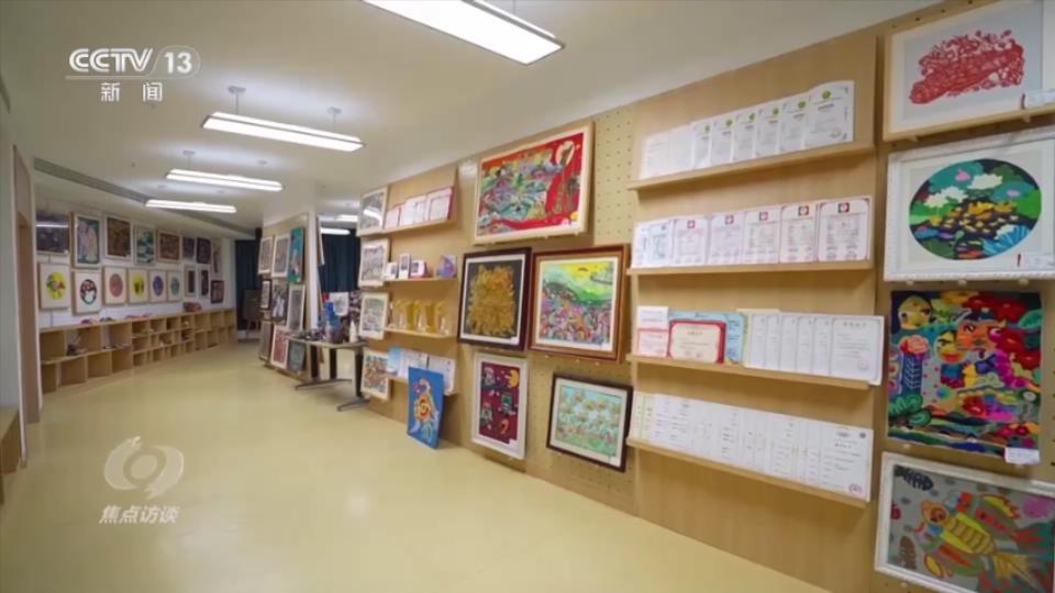 劉小清接受采訪的房間是學校的一間畫室,一幅幅色彩斑斕的作品記錄著在劉小清及老師們的輔導下孩子們的成長。