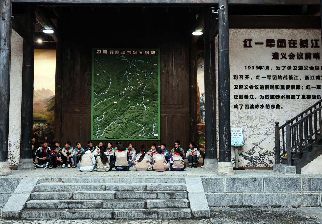 在重慶市綦江區(qū)石壕鎮(zhèn),學(xué)生們?cè)诩t一軍團(tuán)司令部舊址參加研學(xué)活動(dòng)。蘭紅光 攝