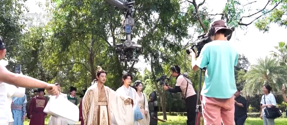 這幾天,位于浙江金華的橫店影視城最高氣溫超過35℃。各大片場里,短劇拍攝更是一片火熱。記者在橫店影視城華夏文化園景區內看見,有兩部短劇正同時拍攝,劇組各占一塊地方,相隔幾百米左右,燈光、搖臂......各種設備應有盡有,工作人員默契配合,拍攝井然有序。