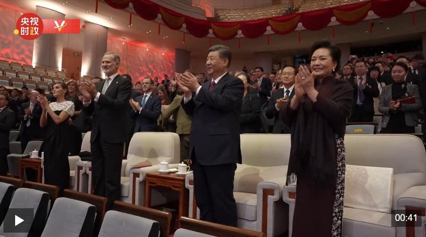 11月12日晚,國家主席習近平和夫人彭麗媛在北京國家大劇院同西班牙國王費利佩六世夫婦一同觀看西班牙皇家劇院音樂會。
