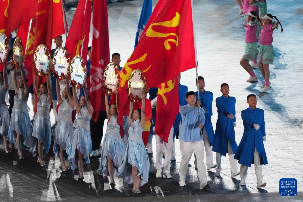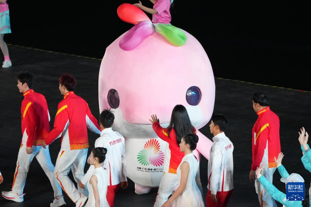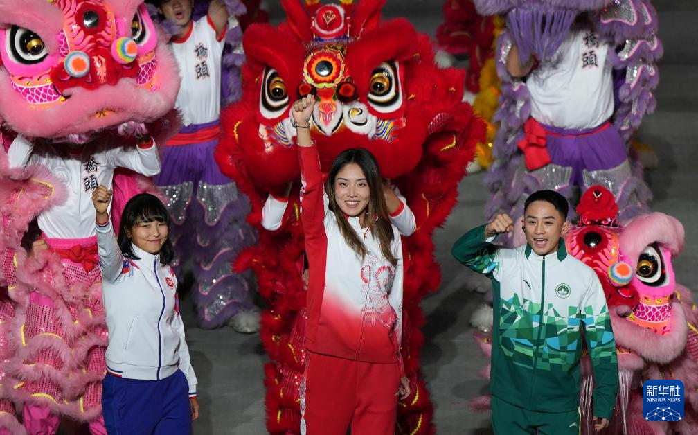 11月21日,廣東省體育代表團(tuán)、香港特別行政區(qū)體育代表團(tuán)和澳門特別行政區(qū)體育代表團(tuán)代表在閉幕式入場(chǎng)儀式上共同入場(chǎng)。