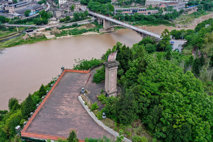 位于赤水河畔的貴州省遵義市習水縣土城鎮,是赤水河中游的重要碼頭,同時也被稱作“躺在紀念館上的紅色小鎮”。1935年,中央紅軍在土城一渡赤水河,拉開了四渡赤水戰役的序幕。這是2021年4月21日拍攝的土城渡口紀念碑(無人機照片)。