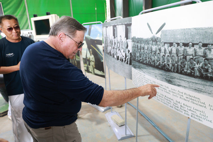 2025年7月16日,美中航空遺產基金會主席杰夫·格林在貴州黃平舊州機場查看飛虎隊資料照片?箲饡r期,舊州機場主要承擔飛機加油、彈藥補充和維修任務。常駐于此的美國飛虎隊戰機頻頻在該機場起降,參加了湘西會戰、衡陽保衛戰等著名戰役。該機場見證了中美聯合反抗法西斯的光輝歷史,還為確保“駝峰航線”的順利暢通發揮了舉足輕重的作用。