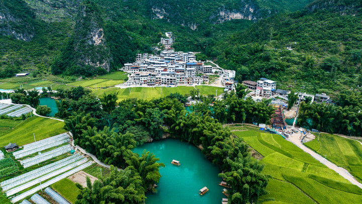 游客乘船游玩貴州省羅甸縣沫陽鎮大小井景區(2025年8月12日攝,無人機照片)。通過不斷升級基礎設施、優化服務體系,羅甸縣以旅居康養為特色,將豐富的山水資源轉化為旅游優勢,讓“享玩水 趣羅甸”成為夏日品牌,推動全域旅游高質量發展。