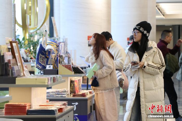 11月27日,游客在新疆博物館挑選“五星出東方利中國(guó)”系列文創(chuàng)產(chǎn)品!∑埨^鵬 攝