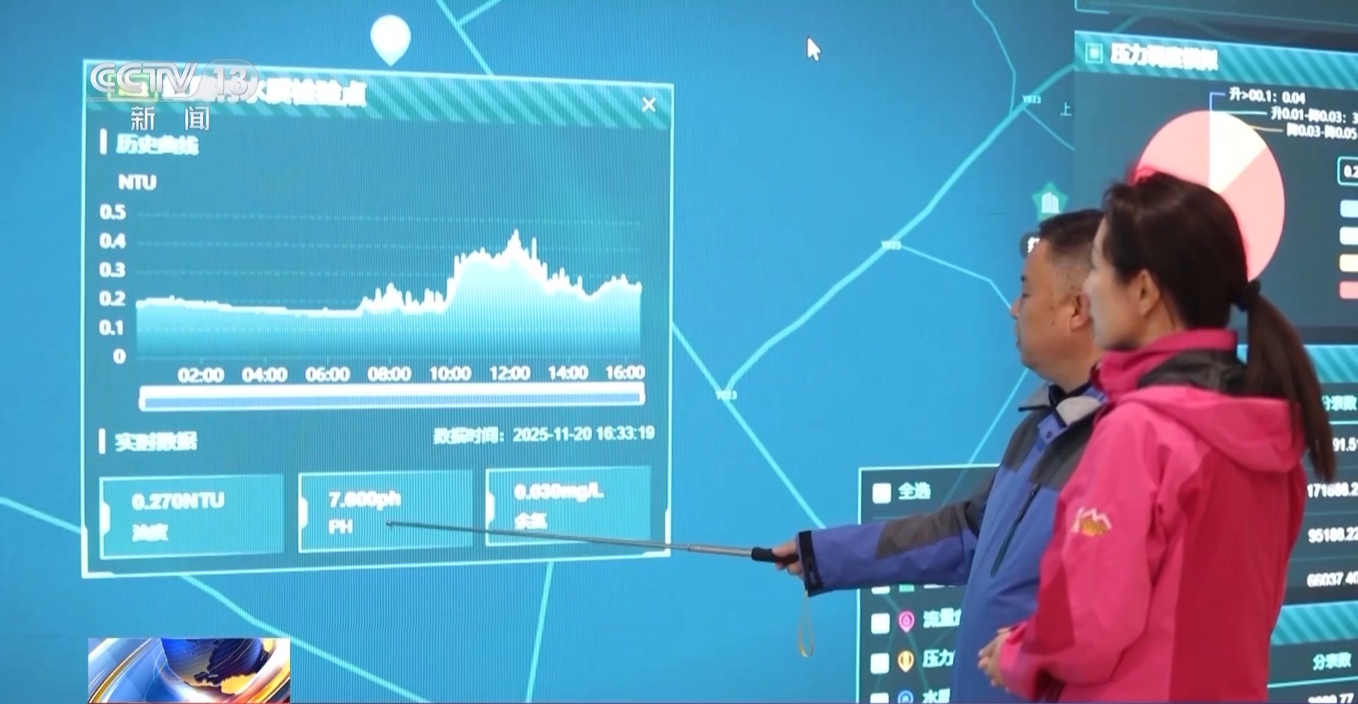 水廠運行數據、水質檢測結果等信息最終都會匯集到嘉禾縣智慧水務中心。工作人員介紹,整套設備實時監測全縣5座大型水廠、泵站及管網,管理人員在電腦前就能掌握全域供水動態。