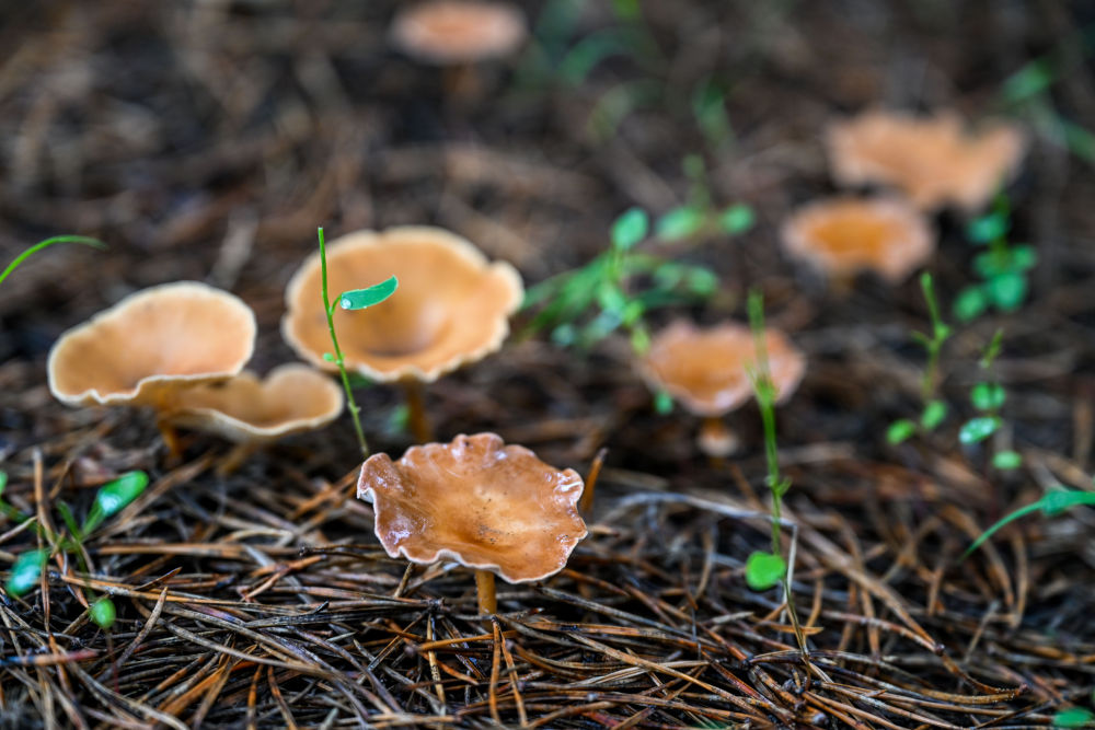 這是在內(nèi)蒙古通遼市科爾沁左翼后旗的科爾沁沙地“雙百萬(wàn)畝”綜合治理工程努古斯臺(tái)項(xiàng)目區(qū)內(nèi),樟子松林下生長(zhǎng)的蘑菇(2024年8月3日攝)。新華社記者 連振 攝