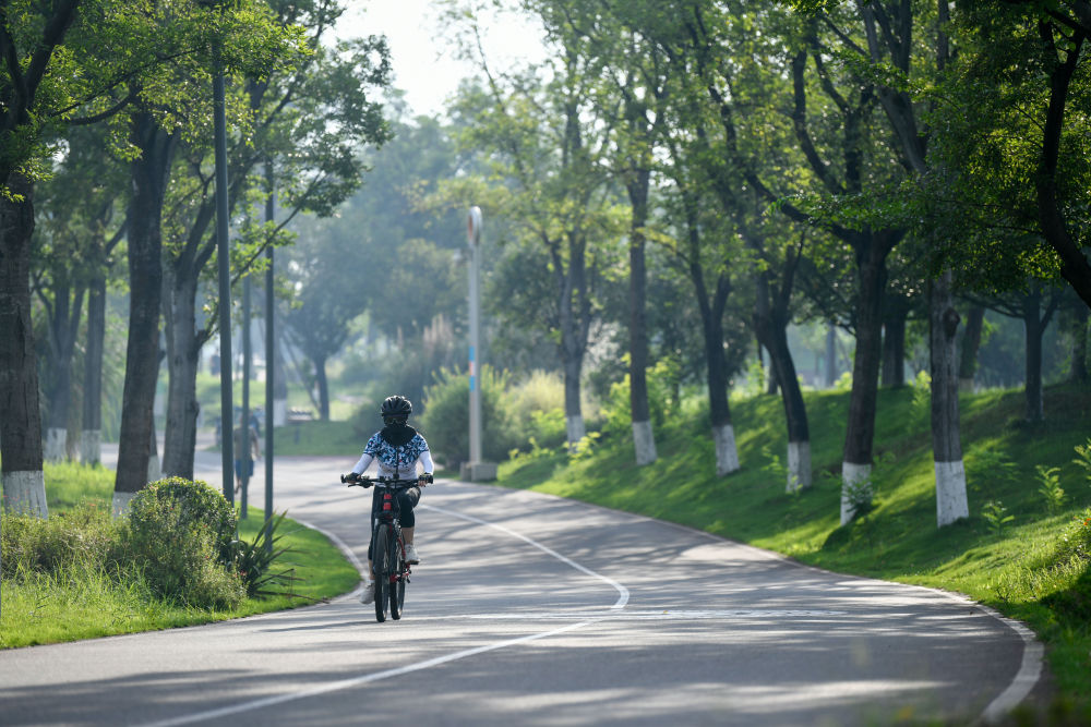 市民在成都天府綠道騎行(2023年7月16日攝)。新華社記者 胥冰潔 攝