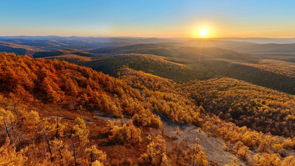 這是2025年9月28日在內(nèi)蒙古牙克石市綽河源鎮(zhèn)拍攝的大興安嶺林海日出(無(wú)人機(jī)拼接照片)。新華社記者 馬金瑞 攝
