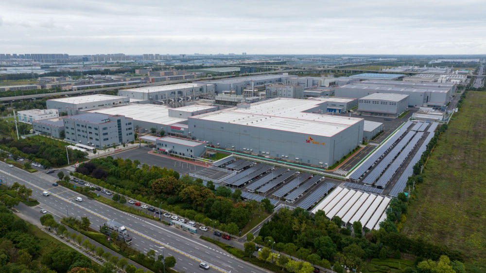 位于中韓(鹽城)產業園內的SK新能源一期動力電池生產基地(10月16日攝,無人機照片)。新華社記者 李博 攝